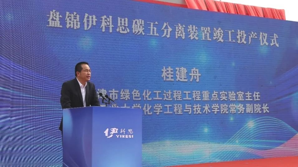 嘉賓代表天津市綠色化工過程工程重點實驗室主任、天津工業大學化學工程與技術學院常務副院長桂建舟發表致辭,他向盤錦伊科思表達了誠摯的祝福與美好的祝愿,肯定了企業在化工新材料領域的積極探索與貢獻。