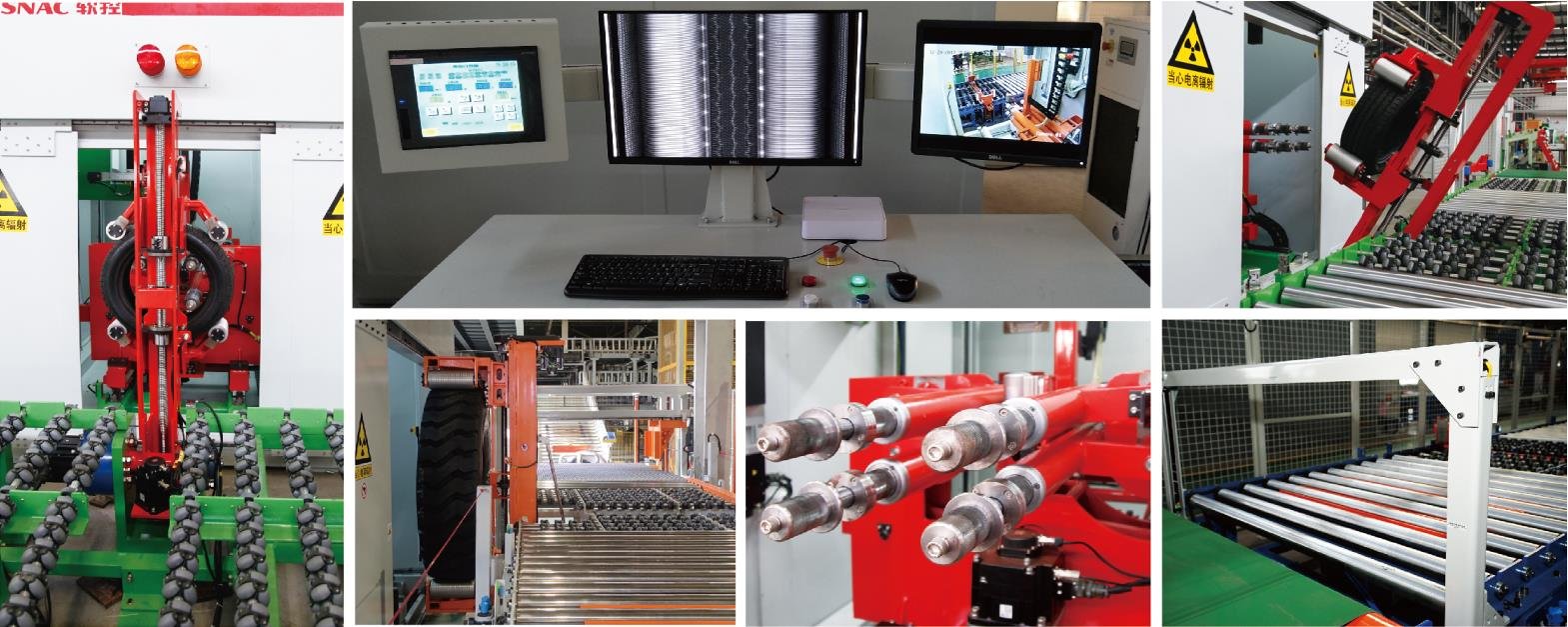 輪胎X射線檢驗機主要用于轎車、載重、工程及翻新子午線輪胎內部結構的檢測。檢測項目包括: 胎體簾線間距和反包, 鋼絲帶束層級差, 接頭斷層缺陷, 氣泡, 鋼絲斷裂, 鋼絲分布不均、撕裂、雜質等。