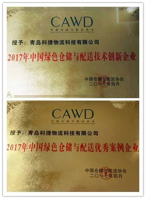 在當晚的頒獎典禮上,科捷以創新高效的綠色物流產品和項目案例獲得兩項大獎---“中國綠色倉儲與配送技術創新企業”、“中國綠色倉儲與配送優秀案例企業”。科捷的智能交叉帶分揀機和堆垛機產品繼入選《中國綠色倉儲與配送技術與設備推薦目錄》后,在此次大會上正式獲得綠色倉儲與配送設備與技術標識授標,這次授標進一步肯定了科捷產品的研發和創新實力。