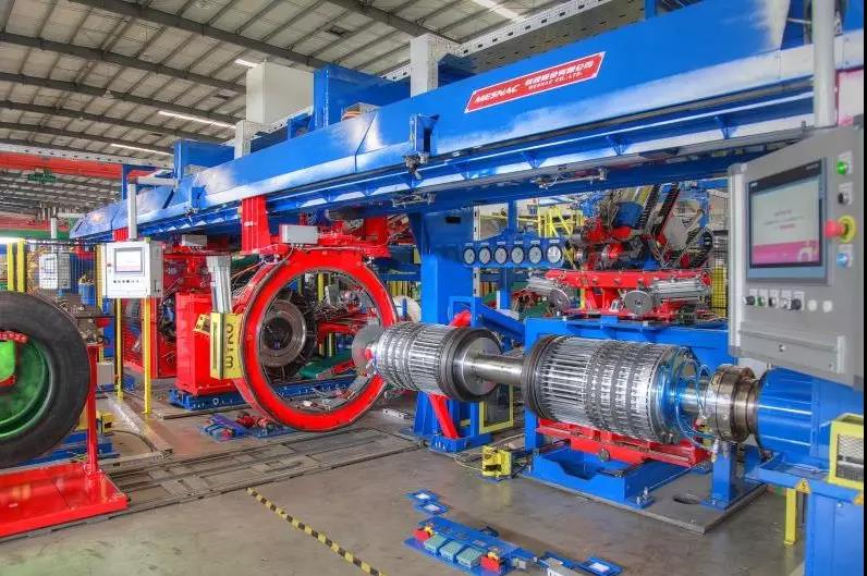其二,自動化程度顯著提高。帶束層環引進WYKO技術,大范圍的調整量使得生產全尺寸范圍內輪胎不用換工裝,帶束層鼓可以實現一分鐘快換鼓瓦,帶束層供料架可以滿足自動定長裁斷,自動化程度大大提高。同時設備配備了最新研發的復合件裁刀,可以實現復合件和子口預復合同時裁斷,以10.00R20輪胎規格為例,單胎循環時間為150秒。