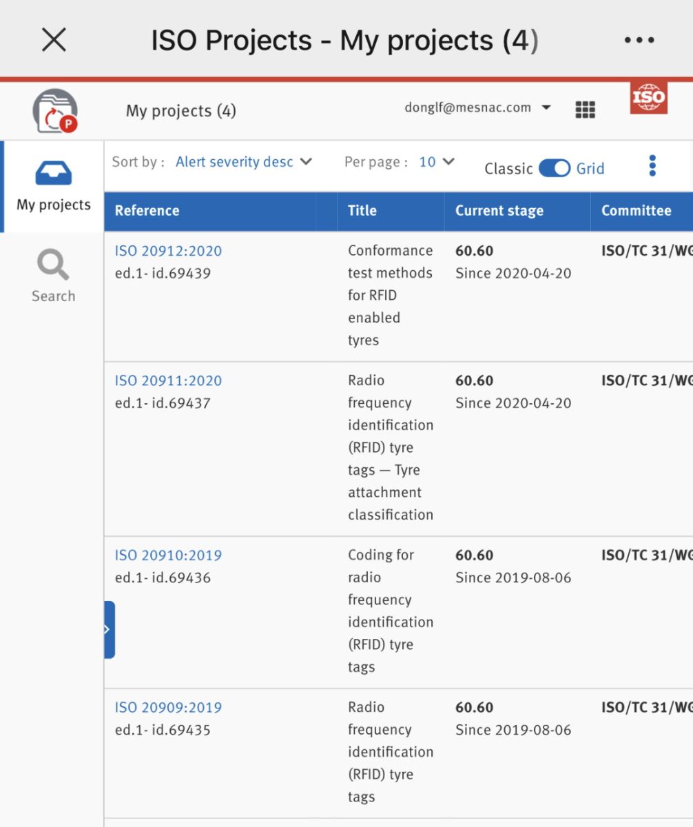 輪胎用RFID電子標(biāo)簽四項(xiàng)國(guó)際標(biāo)準(zhǔn)于2015年10月正式立項(xiàng),由國(guó)際標(biāo)準(zhǔn)化組織ISO/TC31(輪胎、輪輞和氣門(mén)嘴國(guó)際標(biāo)準(zhǔn)化技術(shù)委員會(huì))下設(shè)的WG10“RFID tyre tags”工作組負(fù)責(zé)制定;工作組由來(lái)自中國(guó)、法國(guó)、意大利、美國(guó)、英國(guó)、德國(guó)、日本、韓國(guó)、芬蘭、加拿大、比利時(shí)、泰國(guó)、荷蘭、奧地利、阿拉伯聯(lián)合酋長(zhǎng)國(guó)等國(guó)家相關(guān)企業(yè)單位的60余名專(zhuān)家組成。2015年10月至今,WG10工作組先后在布魯塞爾、三亞、馬賽、西雅圖、羅馬、東京、格林維爾、青島等地方召開(kāi)8次全球工作會(huì)議,若干次工作組網(wǎng)絡(luò)會(huì)議,討論標(biāo)準(zhǔn)內(nèi)容,解決各方分歧,四項(xiàng)國(guó)際標(biāo)準(zhǔn)分別并先后在全球范圍內(nèi)完成CD(委員會(huì)階段)投票,DIS(國(guó)際標(biāo)準(zhǔn)草案)投票,F(xiàn)DIS(最終國(guó)際標(biāo)準(zhǔn)草案)投票,最終形成統(tǒng)一意見(jiàn)。繼2019年8月份,ISO 20909:2019 Radio frequency identification (RFID) tyre tags,ISO 20910:2019 Coding for radio frequency identification (RFID) tyre tags兩項(xiàng)國(guó)際標(biāo)準(zhǔn)發(fā)布后,ISO 20911:2020 Radio frequency identification (RFID) tyre tags-Tyre attachment classification, ISO 20912:2020 Conformance test methods for RFID enabled tyres兩項(xiàng)標(biāo)準(zhǔn)于2020年4月20日發(fā)布。目前,ISO/TC31/WG10工作組承擔(dān)的輪胎用RFID電子標(biāo)簽四項(xiàng)國(guó)際標(biāo)準(zhǔn)已經(jīng)全部發(fā)布。