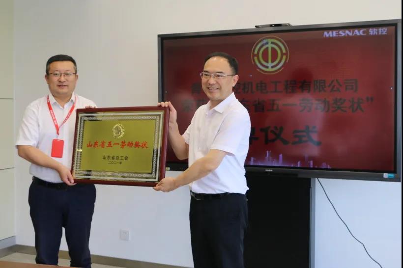 7月9日,膠州市總工會主席姜鵬、副主席孫衛(wèi)剛、生產(chǎn)部部長胡強一行到膠州裝備產(chǎn)業(yè)園為青島軟控機電工程有限公司榮獲2021年“山東省五一勞動獎狀”進(jìn)行授牌。軟控黨委書記、副總裁魯麗娜代表公司對領(lǐng)導(dǎo)們的到來表示了熱烈的歡迎和衷心的感謝;軟控機電公司總經(jīng)理武守濤代表公司接受授牌。